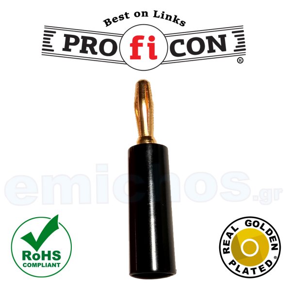 BNN 65G PLM ΜΑΥΡΗ της Pro.fi.con υψηλής ποιότητος φις πλαστική αρσενική μπανάνα επίχρυση banana male plug golden plated