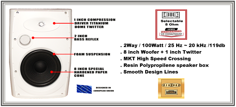 • Ο επιλογέας  λειτουργίας  του ηχείου  σε περιβάλλον 100V ή 8 Ohm χαρίζει μεγάλη ευελιξία στο ηχείο για κάθε απαίτηση