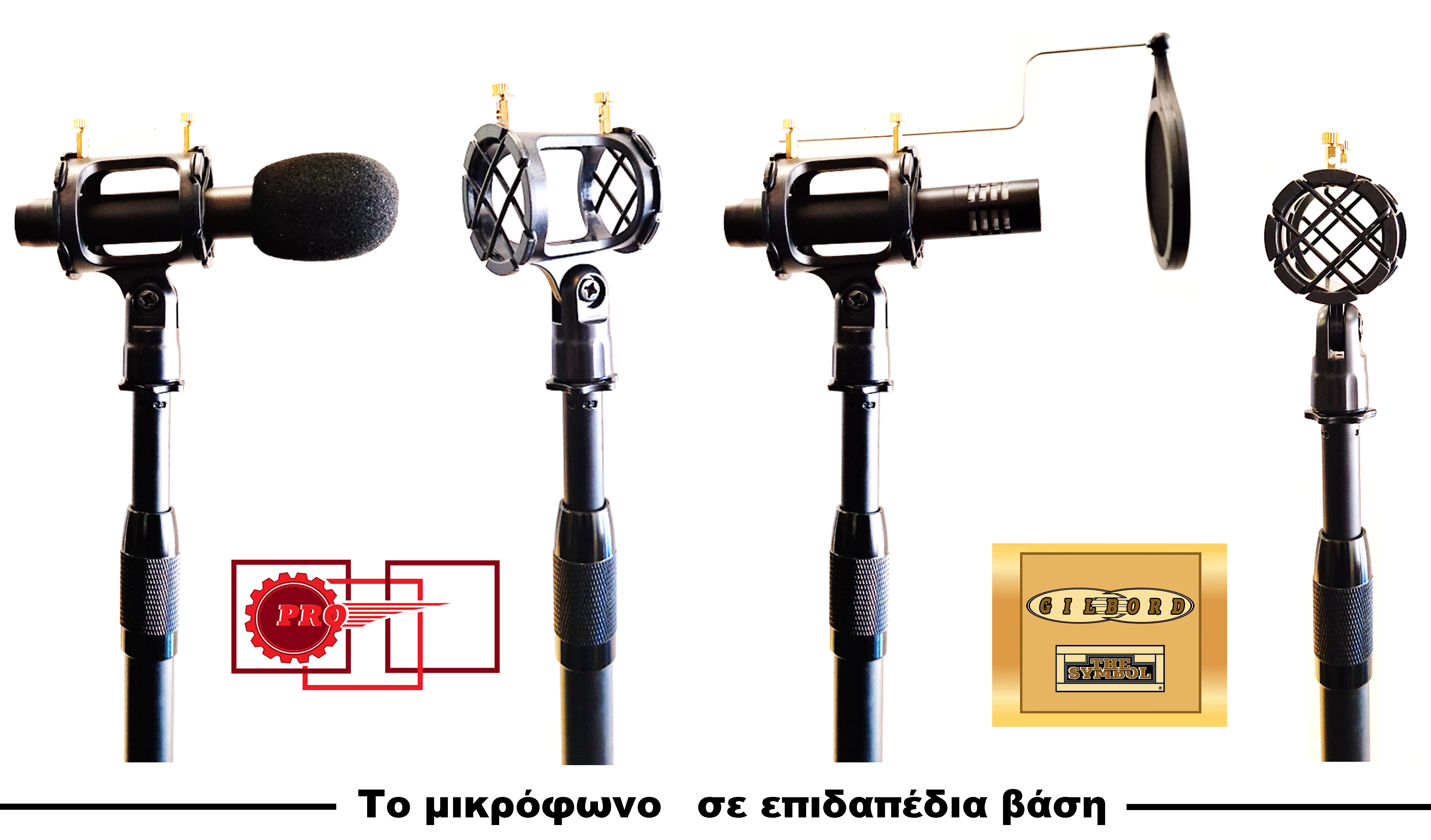 - Το μικρόφωνο στην αντικραδασμική βάση, μπορεί να χρησιμοποιηθεί με την επιτραπέζια βάση αλλά και σε οποιαδήποτε άλλου τύπου βάση επιδαπέδια-επίτοιχη κλπ .