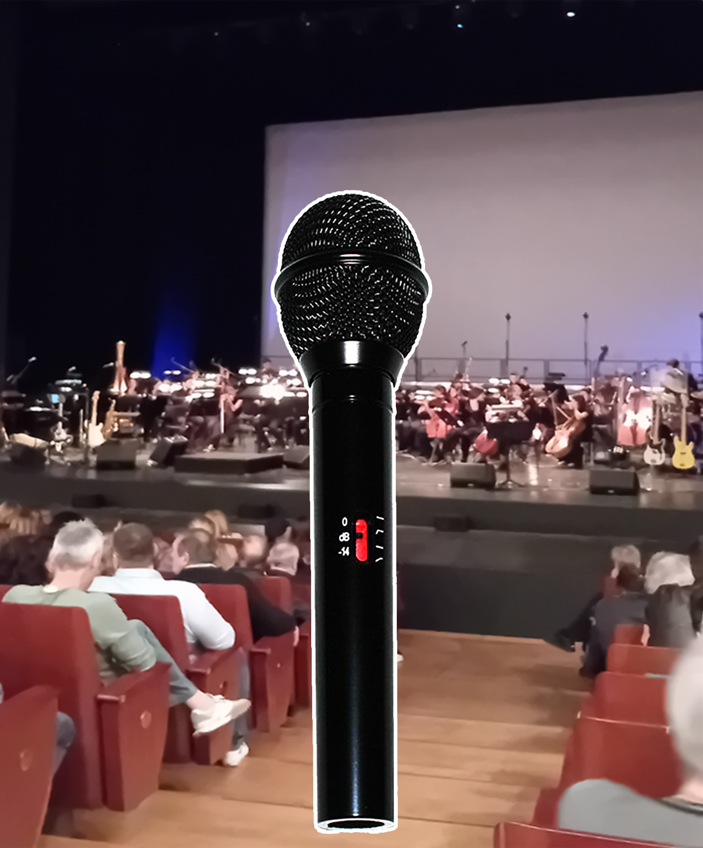 - Μικρόφωνο πυκνωτικού διαφράγματος που στέκεται ψηλά στους χώρους των Studio.
