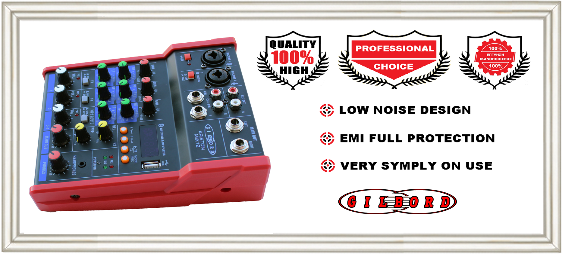 Ο GILBORD ARISTON MIX12 είναι μικροφωνικός μίκτης φορητή κονσόλα mixer τεσσάρων εισόδων άριστης ποιότητας