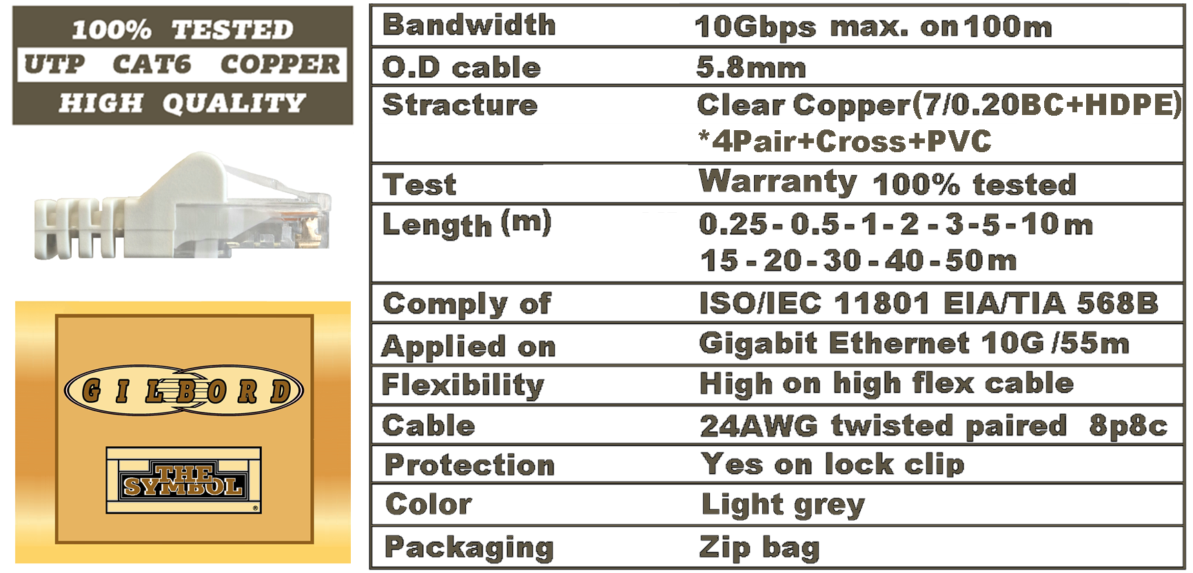 Gilbord Quality UTP CAT6 καλώδιο 3m