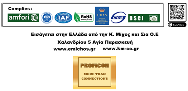 Η φίρμα Pro.fi.con είναι εμπορικό σήμα της εταιρίας Κ.ΜΙΧΟΣ ΚΑΙ ΣΙΑ Ο.Ε, κατατεθειμένο στο Ελληνικό Υπουργείο Εμπορίου.